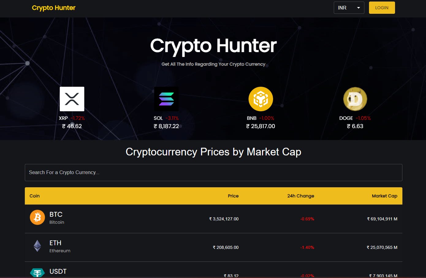 - The Crypto Hunter Application demonstrates my ability to create dynamic and user-centric web applications, providing crypto enthusiasts with a valuable tool to stay informed about the ever-changing cryptocurrency market.
