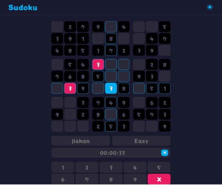 - A robust validation system ensures that users' inputs adhere to Sudoku rules. The application provides feedback on incorrect entries, guiding users to correct their mistakes.